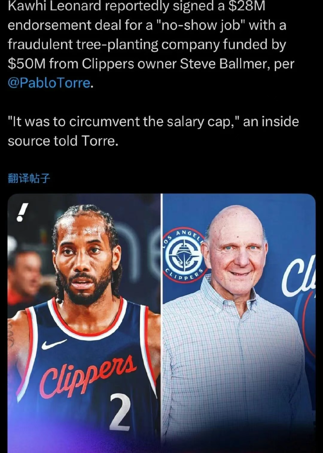 NBA爆出重磅丑闻。据The Athletic记者爆料,快船老板史蒂夫-鲍尔默和球星科怀-伦纳德涉嫌签订阴阳合同规避工资帽,后者通过一家名为Aspiration的公司违规多拿2800万美元。